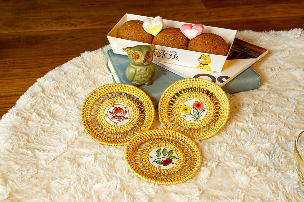Set of 4 Premium Multiple Flower Handcrafted Rattan Coasters Set