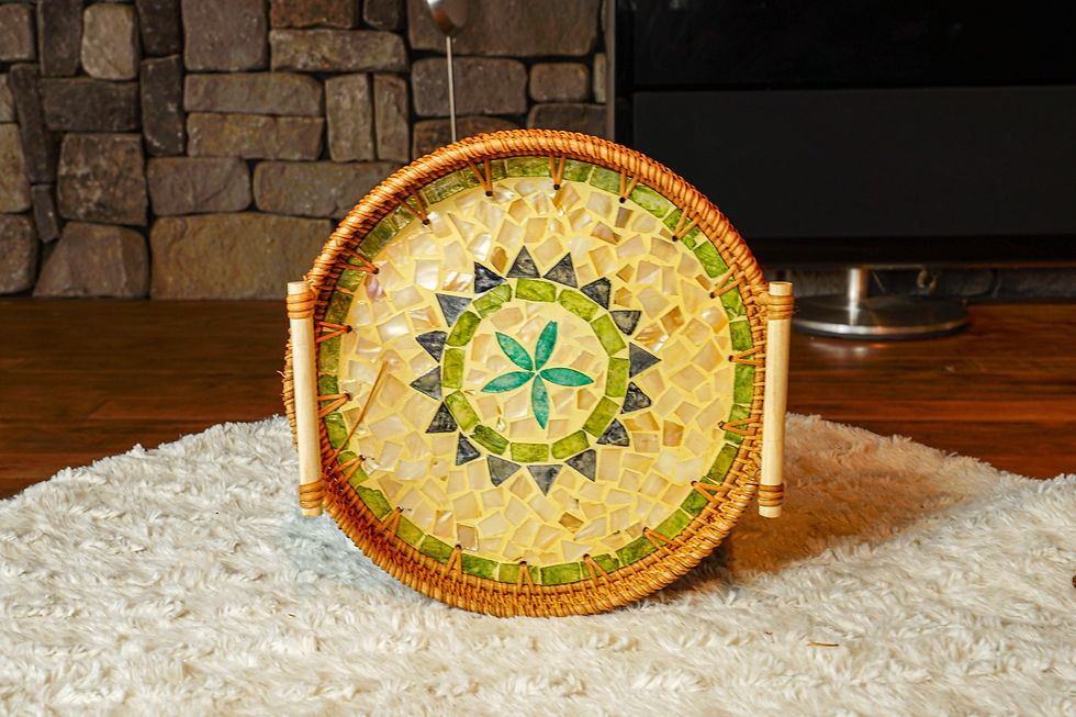Set of 3 Round Pink Flower Rattan Inlaid Trays